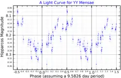 - ↑ "YY Mensae". SIMBAD. Centre de données astronomiques de Strasbourg. Retrieved September 28, 2022.