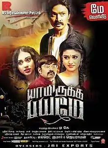 Yaamirukka Bayamey (transl. There is reason to fear, when I am there) is a 2014 Indian Tamil-language horror comedy film written and directed by debutant Deekay and produced by Elred Kumar.[2][3] The cast includes Kreshna, Oviya, Rupa Manjari, Karunakaran, and Anaswara Kumar.[4] 15 technicians were introduced in the film,[5] which started shooting in Nainital in October.[6] Previously titled as Illa Aanalum Irukku,[2] the film released on 9 May 2014 [7] and received positive reviews.[8] The film was later remade into Kannada as Namo Boothatma and in Telugu as Next Nuvve. Yaamirukka Bayamey is based on the 1998 Korean film The Quiet Family.[9][10][11][12]