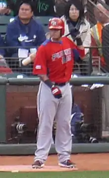 Molina's father also sought to accelerate him on the diamond. Following Yadier's suspension from a youth league about age 15, he anticipated the desistance would stagnate his development, so he searched for an alternative. Against the wishes of coaches, family members and friends, he scheduled Yadier for a workout with the Hatillo Tigres, an amateur league team. Molina made the team after a single workout and immediately became the starting catcher.[5] The Tigres' first baseman, Luís Rosario, was the one who recommended him to the organization.[7] The Tigres played in a league composed mainly of players 10 or more years older than Molina, well before he was eligible for the MLB draft.[8]