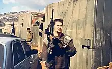 Golan was drafted into the IDF in 1980. After successfully passing the flight academy acceptance tests, he decided to follow his brother's steps and volunteer for the paratrooper brigade instead.[15] He served as a soldier and a squad leader and fought in the 1982 Lebanon War. After completing Officer Candidate School he became an infantry officer and returned to the Paratroopers Brigade as a platoon leader.[16] Golan served as the commander of the Brigade's Anti-tank company and led the 890 Paratroop Battalion in counter-guerrilla operations in the South Lebanon conflict and in the First Intifada.[17] In 1993 he served as a Battalion Commander in IDF Officers' School and afterwards served as Judea and Samaria Division's Operations Branch Officer. Between the years 1996–1997 he Commanded the Eastern brigade of Lebanon Liaison Unit and was injured in an encounter with a squad of Hezbollah militants.[18] Afterwards he served as the head of the Operations section in the Operations Directorate.[18] During the Second Intifada, Golan commanded the Nahal Infantry Brigade.[19] Afterwards he commanded the 91st Division and the Judea and Samaria Division.[18] From 2008–2011, Golan served as the Commander of Home Front Command, which he led through Operation Cast Lead.[4] In July 2011 he served as the Commander of Israeli Northern Command,[5] and in December 2014 as Deputy Chief of General Staff. According to Defense Minister Moshe Ya'alon, prior to Gadi Eisenkot's appointment as Chief of Staff in February 2015, Prime Minister Benjamin Netanyahu preferred Golan over Eisenkot.[20] However, Eisenkot has been chosen, and Golan continued in his role.