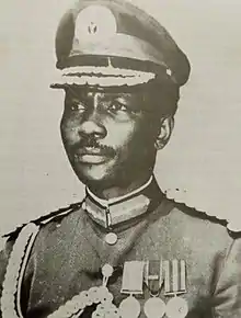 In January 1966, he became Nigeria's youngest military chief of staff at the age of 31, because a military coup d'état by a group of junior officers under Major Chukwuma Kaduna Nzeogwu led to the overthrow of Nigeria's civilian government.[14] In the course of this coup, mostly northern and western leaders were killed, including Sir Abubakar Tafawa Balewa, Nigeria's Prime Minister; Sir Ahmadu Bello, Sardauna of Sokoto and Premier of the Northern Region; and Samuel Akintola, Premier of the Western Region, Lt Col Arthur Unegbe and so many more. The then Lieutenant Colonel Gowon returned from his course at the Joint Staff College, Latimer UK two days before the coup – a late arrival that possibly exempted him from the plotters' hit list.[15] The subsequent failure by Major General Johnson Aguiyi-Ironsi (who was the head of state following the January 1966 coup-with Gowon his Chief of Staff) to meet Northern demands for the prosecution of the coup plotters further inflamed Northern anger. There was significant support for the coup plotters from both the Eastern Region as well as the mostly left-wing "Lagos-Ibadan" press.