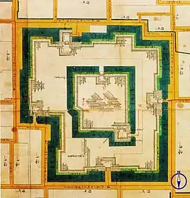 Yamagata Castle (山形城, Yamagata-jō) is a flatland-style Japanese castle located in the center of the city of Yamagata, eastern Yamagata Prefecture, Japan. Throughout the Edo period, Yamagata Castle was the headquarters for the daimyō of Yamagata Domain. The castle was also known as "Ka-jō" (霞城). The castle grounds are protected as a National Historic Site by the Japanese government[1]