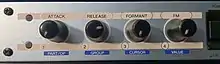 The FS1R uses the "formant sequence",[4] this being a series (128 or 512) of "frames" that define the level and frequency of each of up to eight 'voiced' (pitched) and eight 'unvoiced' (un-pitched) formant generators over time. The number of frames limits the typical length of a sequence to a few seconds, though this length and pitch can be varied in real-time with few or no artefacts. Applying a formant sequence to a sound allows a complex, evolving sound to be programmed in a relatively short time. 90 formant sequences were supplied with the FS1R.
