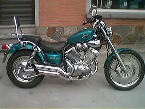 The Yamaha Virago was Yamaha's first V-twin cruiser motorcycle, and one of the earliest mass-produced motorcycles with a mono-shock rear suspension. Originally sold with a 750 cc (46 cu in) engine in 1981, Yamaha soon added 500 cc (31 cu in) and 920 cubic centimetres (56 cu in) versions.