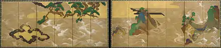 - ↑ Paine, 133–135; the one screen from this period shows a panoramic landscape and small figures; image