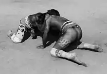 During these wrestling matches the opponents face each other, and rotate clockwise while grunting like a jaguar. They then kneel to the ground, shake each other's hands, then begin to wrestle.[5][3]