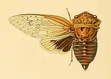 - ↑ Distant, W. L. 1912. Homoptera Fam. Cicadidae, Subfam. Cicadinae. Genera Insectorum Fasc. 142. V. Verteneuil & L. Desmet, Bruxelles