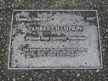 Thomas L. Morandi 1983 / Yankee Champion / Portland State University Collection / This work was made possible by Oregon's Percent / For Art in Public Places Program.[1]