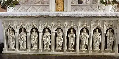 Larhantec executed statues in white marble for the altar of this Plougonven church in 1866.[3]