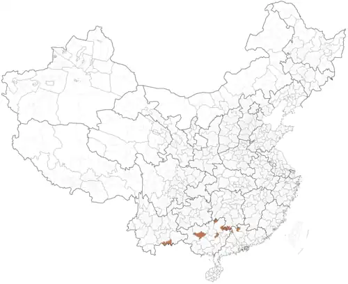 Distribution of ethnic Yao population in China, based on 2000 Chinese Census.