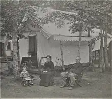 Early image of a family in front of their tent at Yarmouth Camp Ground