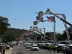 On July 2, more than 3,000 people attended a public memorial service at an indoor stadium in Prescott Valley.[35] Vice President Joe Biden, Arizona Governor Jan Brewer, and the team's lone surviving firefighter, Brendan McDonough, spoke at a memorial in Prescott on Tuesday, July 9.[36] That memorial was attended by thousands, including representatives from over 100 hotshot crews across the country, and was streamed live by several media outlets.[37] Individual memorial services were scheduled for later in the hometowns of the 19 firefighters.