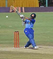 Yashasvi Bhupendra Jaiswal (born 28 December 2001) is an Indian international cricketer who plays for the Indian cricket team. He made his international debut in the first Test against the West Indies in July 2023, scoring a century in his first innings in Test cricket.[3] Domestically he plays for Mumbai and Indian Premier League (IPL) franchise Rajasthan Royals. In 2019, he became the youngest cricketer to score a List A cricket double century,[4] and in the 2020 Under-19 Cricket World Cup, he was the leading run-scorer for India under-19s.[5]
