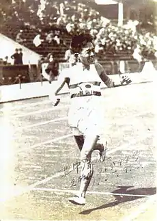 ![]() Yasuo Ikenaka at finish line of the Berlin Olympic trials on April 3, 1935 in Tokyo, Japan. | |