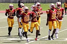 Historically the American football game between Yates and Wheatley High School was among the most prominent ones in the United States.[12] Beginning in 1927,[54] each Thanksgiving Day the school's American football team played Yates High School's football team at the Jeppeson Stadium.[55] The Yates-Wheatley Thanksgiving football match, described by On American Soil: How Justice Became a Casualty of World War II author Jack Hamann as "the most important noncollege football game in the country", often had crowds that had over 30,000 people.[56] The rivalry declined after Yates joined the UIL, and after the football leagues integrated the Thanksgiving Day Yates-Wheatley game ended.[57]
