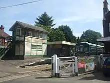 | Yaxham | - | Great Eastern Railway | The station was originally provided with a signal box to the north of the station. The signal box survives in private ownership, although missing its 26 lever McKenzie & Holland lever frame and is the only original signal box remaining on the route. The box is currently used by the Mid-Norfolk Railway as a crossing cabin. | ![]() |