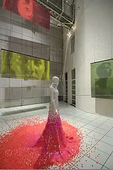 During the past year Arboleda has been traveling the world orchestrating a "Living Sculpture" titled Monday Morning.[22] The project has been created so far in India, Japan and Kenya.[23] During the project volunteers give away more than 10,000 balloons of a given color to people who are commuting to work during the time span of Monday Morning. According to his website, this is part of the artist's Living Industries Projects. His installations compel viewers to question the true nature, source and ownership of art which can be seen as the explorations of the relationship between art and living materials. The balloons will therefore attempt to transform an ordinary Monday morning into something unique.[24]