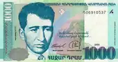 After his rehabilitation, Soviet authorities also issued a commemorative stamp of 40 kopecks honoring Charents in 1958. Another commemorative stamp of 150 Armenian drams as well as a commemorative coin of 100 Armenian drams were issued by the Republic of Armenia in 1997. The new Republic of Armenia currency denomination for 1000 drams carried on one of its two sides the photo of Charents and a famous quotation in Armenian of one of his poems: (Armenian) "Ես իմ անուշ Հայաստանի արեւահամ բարն եմ սիրում" (I love the sun sweet taste of Armenia). Pope Francis during his visit to Armenia in 2016 recited a passage from that poem of Charents.[17]