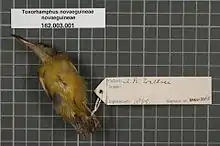 The yellow-bellied longbill or green-crowned longbill (Toxorhamphus novaeguineae) is a species of bird in the family Melanocharitidae. It is found in New Guinea. Its natural habitats are subtropical or tropical moist lowland forest and subtropical or tropical moist montane forest.