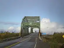 The Deh Cho Bridge opened on November 30, 2012, and replaced the ferry/ice bridge.[1] Trucks pay tolls on northbound crossings, with pre-registered trucks using an electronic device being charged automatically. Private passenger vehicles do not pay a toll. Estimated costs have more than tripled since 2003.[2][3] In 2021, the Tłı̨chǫ All-Season Road opened as a branch from the Yellowknife Highway.