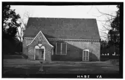 This is the fourth oldest complete church in Virginia preceded by Newport Parish in Smithfield 1680, York-Hampton Parish Church (Grace Church) 1697, and St. Peter's in New Kent County 1701. The original part of the present building can be assigned a date of 1706 according to a dating brick in the south east wall.[13] The north wing was most likely erected circa 1725.[14] It is the second church on this site; the earlier building was a wooden structure of "oak timbers, sheathed with clapboards.".[15] Curiously, parts of the wooden structure, including a corner post inside the east gable and a portion of a beam were found embedded in the walls. It has been suggested with no real proof that the brick walls were erected around the frame of the earlier wooden one, essentially encasing it. It is far more likely that some wooden elements of the earlier church were re-used in the construction of the present brick edifice.[12]