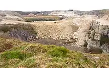 The north-eastern face of the quarry has a clean, albeit partly overgrown, sequence of Portland Stone, both Cherty Series and Freestone.[3] On the outskirts of the quarry are rough paths and tracks on the seaward side, which is popular for walking.[4]