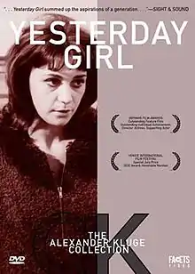Yesterday Girl (German: Abschied von gestern, "Farewell to Yesterday") is a 1966 drama film directed and written by Alexander Kluge. The film is based on the short story "Anita G." (1962), which is also by Alexander Kluge.[1] The film tells the story of Anita G., a young East German migrant to West Germany and her struggle to adjust to her new life.[2] The film is associated with New German Cinema.