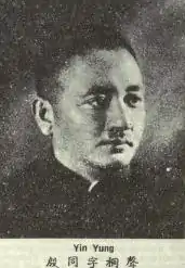 'Yin Tong (Chinese: 殷同; pinyin: Yīn Tóng; Wade–Giles: Yin T'ung; 1889[1] – December 30, 1942) was a politician and military personnel in the Republic of China. He was an important person during the Provisional Government of the Republic of China and Wang Jingwei regime. His courtesy name was Tongsheng (桐聲). He was born in Jiangyin, Jiangsu.