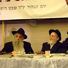 ![]() Rabbi Yisroel Friedman (right) seated on the dais along with Rabbi Yoel Kahn (left) | |