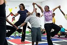Marsha Wenig, founder of YogaKids International, has developed yoga sessions with videos suitable for children aged 3 to 6.[3] She agrees that the teaching methods are necessarily quite different from those used to teach adults. The benefits may be "stillness, balance, flexibility, focus, peace, grace, connection, health, and well-being"[4] but the challenge for the teacher is to hold the class's attention. She encourages children to "bark in the dog pose, hiss in the cobra, and meow in cat stretch."[4] Her experiences led to a 2003 book describing the methods that she developed.[5]