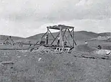 Yogo Gulch lies in a region originally inhabited by the Piegan Blackfeet people.[11][12] Gold was first discovered at Yogo Creek in 1866, but the small numbers of early prospectors were driven off by local Native Americans.[13][44] During a Gold Rush in 1878, about a thousand miners came to Yogo Creek, which was one of the gold-bearing streams in Montana not yet actively mined. "Blue pebbles" were noted along with small quantities of gold. The mining camp at Yogo City only flourished for roughly three years,[13] and eventually the population dwindled to only a few people.[13]