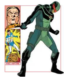 Yon-Rogg is a character appearing in American comic books published by Marvel Comics. Created by Stan Lee and Gene Colan, the character first appeared in Marvel Super Heroes #12 (December 1967).[1][2] Yon-Rogg is a military commander of the Kree alien race who was sent on Earth on behalf of the Supreme Intelligence, in order to promote Kree genetic superiority.[3] The character is a foe of Carol Danvers and was indirectly responsible for her transformation into Ms. Marvel.