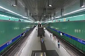 Yongchun station (formerly transliterated as Yungchun Station until 2003) is a station on the Bannan line of the Taipei Metro, located in Xinyi District, Taipei, Taiwan.[2] It opened on 30 December 2000 as part of the eastern extension to Kunyang. The station is a planned transfer for the Circular line.