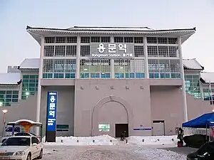 Yongmun Station is a station on the Gyeongui–Jungang Line in Gyeonggi-do, South Korea. It was the eastern terminus of the commuter railway, running from Seoul to Yangpyeong County until 2017. Mugunghwa trains also stop at this station.