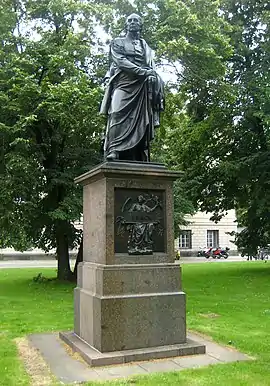 The Yorck Memorial on Bebelplatz green space in Berlin's Mitte district commemorates the Prussian field marshal and freedom fighter Ludwig Yorck von Wartenburg (1759–1830). Created from 1840 to 1855 by Christian Daniel Rauch in neoclassical style, it is a piece of the Berlin school of sculpture.[1] Until 1950 the bronze statue stood at the front of Unter den Linden avenue, with which it formed an urban ensemble, and since 1963 it has stood at the back of Bebelplatz green space.