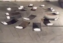 Yorgos Kypris’ “Parallel Notions" is a study on solitude and the consequential notions of sleep-death-abandonment. Using mainly steel, x-rays, colored slides and pillows he creates bed installations, dealing with the end (death) in a conceptual way. With austere forms and lines he organizes the presence of solitude and abandonment creating installations like in a mystic ritual.