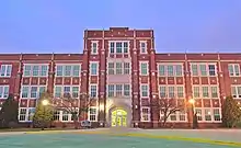 Prior to 1918, Elmhurst operated a combined high school and grammar school, which was destroyed by fire in December 1917.[11] York was established in 1918. The building saw many additions from 1950 through 1990, including a third floor, a four-classroom fourth floor, swimming pool, and additional facilities. In 2000, the voters of District 205 passed a referendum to rebuild the school.[12] Construction started soon after and the new building, which was first opened in 2002, has separate academic, service, student commons and athletics areas (including a new fieldhouse).