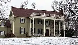 Several additions have been made to the house since its humble origins as a simple two-storied log cabin. An extended two-storied wing was added in the late 1790s to include separate living quarters for another family member. A limestone addition to the house and other various stone out-buildings were built between 1802 and 1825, including the 1812 bank barn that is host to many weddings and receptions today.[2] The last additions, to include the stately columned-front porch and west wing, were built in 1972 by Jerry Hockman.