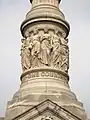 The Yorktown Victory Monument is a monument erected in Colonial National Historical Park in Yorktown, Virginia, commemorating the 1781 victory at Yorktown and the alliance with France that brought about the end of the American Revolution and the resulting peace with England after the American Revolutionary War. Designed by Richard Morris Hunt, the monument was installed in 1884. At the top stands a figure of Liberty sculpted by John Quincy Adams Ward. That element was destroyed by lightning in 1942. It was replaced in 1957 by a figure of Victory by Oskar J. W. Hansen.[1]