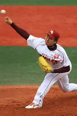 Yoshinao Kamata (釜田 佳直, born October 26, 1993, in Komatsu, Ishikawa) is a Japanese professional baseball pitcher for the Tohoku Rakuten Golden Eagles in Japan's Nippon Professional Baseball.