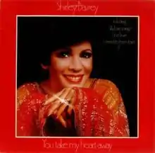 You Take My Heart Away is the 22nd studio album from Shirley Bassey, released in 1977 on the United Artists Records label. The album peaked at #34 in the UK album chart.[1] The tracks recorded for this album are contemporary pop, soft rock songs, dating mainly from the early to mid-1970s. The title track "You Take My Heart Away", originally performed by Bill Conti, was featured in the 1976 film Rocky. Other covers versions included are: "This One's for You" from Barry Manilow, "Silly Love Songs" from Wings, which had been a #1 hit single on the Billboard Hot 100, "Stargazer" from Neil Diamond. Only one track dates from a previous era: "Can't Help Falling in Love" was recorded by Elvis Presley in 1962.