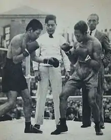 ![]() Young Tommy vs. Piston Horiguchi (left), 1933 in Japan. | |