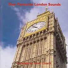 Realised in 2001, Your Favourite London Sounds is a CD based on responses from the questionnaire, featuring 40 examples of London sounds given as choices.[3][4] Some of the recordings are the same as those which debuted on the 1998 radio station.[7] Cusack compiled and edited the disc and recorded 35 of its tracks; the others were recorded by Matthias Krispert ("Brixton Station"), Tom Wallace ("Bus Pressure"), Bunny Schendler ("Euston Main Line Railway Station"), Clive Bell ("Tottenham Hotspurs Football Club, White Hart Lane") and Syngen Brown ("LRT Transformer, Putney").[8]
