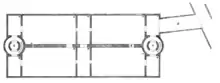 The brewery's first facilities were located Hausmanns street 8–12, site of the present-day Blue Cross Building.[3] In 1844, the brewery built cellars for cooling and storage on the Aker hill close to the Old Aker Church. Its large storage rooms, with brick walls and vaults, was very advanced when it was opened in 1843, and crown prince Oscar was present at the opening.[4] The timber-framed building above ground in Akersbakken 22–24 was used for bottling the beer. It was demolished in 1953, when the site was incorporated into the churchyard.