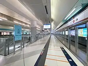 Yuen Long (Chinese: 元朗) is an MTR station in the north-eastern part of Yuen Long Town, New Territories, Hong Kong, on the Tuen Ma line between Kam Sheung Road and Long Ping. It is an interchange between the Tuen Ma line and Yuen Long stop of the Light Rail system.
