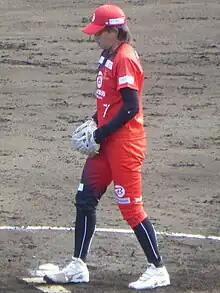 Yukiko Ueno (上野 由岐子, Ueno Yukiko, born July 22, 1982 in Fukuoka City) is a Japanese,[1] medal-winning Olympian, professional right-handed softball pitcher for Bic Camera Takasaki Bee Queen and the Japanese national team, who holds a bronze and two gold medals from the 2004, 2008 and 2020 Summer Olympics, respectively. She became the first pitcher ever to throw a perfect game at the Olympics, against China in Athens.[2] With a fastball that tops out at 128 km/h (80 mph), she is widely recognized as the fastest pitcher in women's softball, although her signature pitch is her change-up, which is often cited as the best in the world.[3]