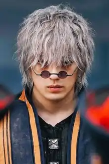 Raised by his older sister, Tomoe, due to their mother passing away.[10] When Tomoe became engaged to Kiyosato Akira, Kiyosato is killed by Hitokiri Battōsai (Himura Kenshin). Tomoe left her brother behind to seek revenge, working with the Yaminobu to do so. When he was about ten, he discovered the location of Tomoe through the Yaminobu and appeared before her, revealing that he was the contact sent to Tomoe. Enishi gains a deep hatred for Kenshin and swore vengeance against him for killing his sister.[11] He disappears to China, where he was taken in by a kind and wealthy family after suffering months of hardship in the wilderness. Enishi's hair was originally black but after witnessing Kenshin's accidental killing of his sister, Tomoe, his hair turned snow white from the stress and grief of losing her.[12] In order to reach his goal, Enishi learns the Watōjutsu, a sword style that he taught himself. It is composed of the speed and slashing style of kenjutsu and the strength and flexibility of the typical Chinese sword art used in conjunction with the Watō, a Chinese-made Japanese tachi.[13][14]