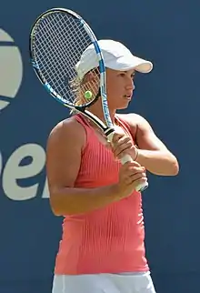 Putintseva had mixed results in the 2019 season. In January, she reached the quarterfinals of the Premier-level Sydney International and recorded a top-10 win over Sloane Stephens in the second round,[20] before she lost to Kiki Bertens.[21] She reached only the second round of the Australian Open and the Indian Wells Open, and the first round of the St. Petersburg Trophy and the Dubai Tennis Championships. She then reached her first Premier Mandatory round-of-16 at the Miami Open.[22] There, she defeated Kirsten Flipkens, Belinda Bencic and Anastasija Sevastova,[23] before she lost to Karolína Plíšková.[24] At the Madrid Open, she reached the third round, but lost to Ashleigh Barty.[22] In May, she won her first WTA singles title at the Nuremberg Cup, after she defeated Tamara Zidanšek in the final.[25] Then, after a first-round loss at the French Open, she reached the quarterfinals of the Premier-level Birmingham Classic,[26] where she defeated the world No. 1, Naomi Osaka.[27] At Wimbledon, she created a big upset in the first round with another victory over Osaka.[28] However, she lost in the second round to Viktorija Golubic.[22] She lost in the early rounds at the Canadian Open, Cincinnati Open and Bronx Open.[22][29] She reached the third round of the US Open, where she defeated the world No. 13, Aryna Sabalenka.[30] At the Japan Women's Open, she reached the quarterfinals, but this time Osaka gained her revenge, winning in straight sets.[31] Putintseva reached another WTA tournament quarterfinal later in the year, at the Tianjin Open, where she lost to Ons Jabeur.[32]