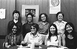 In the mid-1960s, Kochiyama joined the Revolutionary Action Movement, a black nationalist organization dedicated to urban guerrilla warfare which was one of the first organizations in the black liberation movement to attempt to construct an ideology based on a synthesis of the thought of Malcolm X, Marx, Lenin, and Mao Zedong.[12] In 1968 she was one of the few non-blacks invited to join the Republic of New Africa which advocated the establishment of a separate black nation in the Southern United States. Kochiyama joined, and subsequently sided with, an RNA faction which felt that the need to build a separate black nation was even more important than the struggle for civil rights in Northern cities.[13] After Kochiyama became a "citizen" of the RNA she decided to drop her "slave name" Mary and used only the name Yuri.[14]
