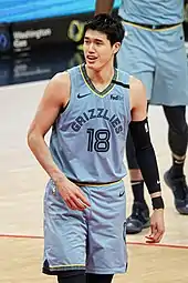 After going undrafted in the 2018 NBA draft, Watanabe played for the Brooklyn Nets in the 2018 NBA Summer League.[30] Afterwards, he signed a two-way contract with the Memphis Grizzlies and their NBA G League affiliate, the Memphis Hustle.[34] On October 27, 2018, Watanabe made his NBA debut, coming off the bench with two points and two rebounds in a 117–96 win over the Phoenix Suns. He became the second Japanese player to play in the NBA after Yuta Tabuse, who debuted with the Phoenix Suns in 2004.[35] Though he spent the majority of the season in the G League with the Hustle, the Grizzlies were third behind the Los Angeles Lakers and Golden State Warriors in merchandise sold in Japan due to Watanabe's presence.[36] In the G League, Watanabe started in 32 of 33 games, averaging 14.2 points, 7.2 rebounds, 2.6 assists and 1.1 blocks in 33.9 minutes while shooting 43.6 percent from the field and 33.1 percent from 3-point range.[37][38]
